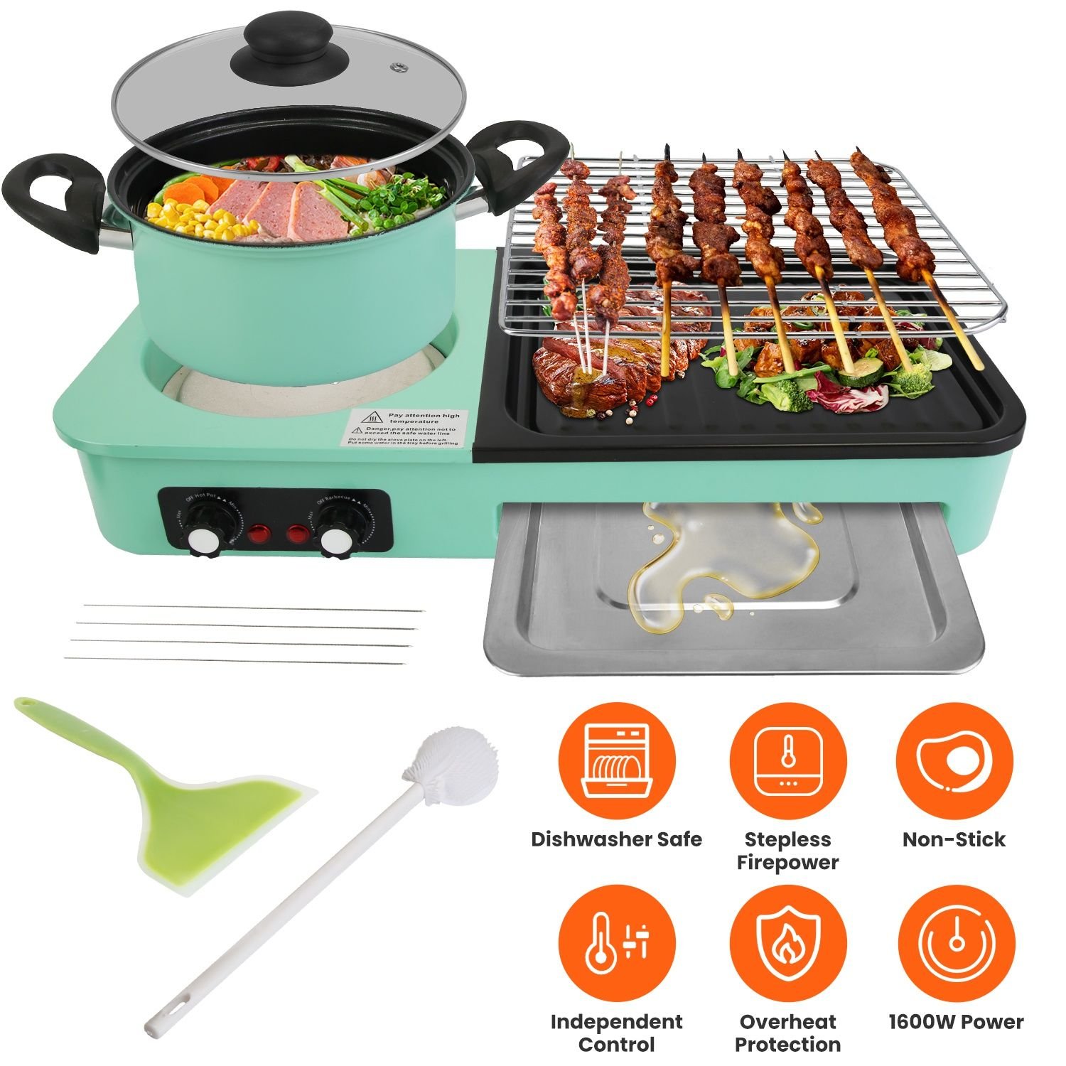 3 in 1 Electric Hot Pot with Grill 1600W Smokeless Non-Stick Korean BBQ Grill Shabu Shabu Hot Pot Combo with Independent Temperature Control for 3-5 P 3 in 1 Electric Hot Pot with Grill 1600W Smokeless Non-Stick Korean BBQ Grill Shabu Shabu Hot Pot Combo with Independent Temperature Control for 3-5 P 3 in 1 Electric Hot Pot with Grill 1600W Smokeless Non-Stick Korean BBQ Grill Shabu Shabu Hot Pot Combo with Independent Temperature Control for 3-5 P