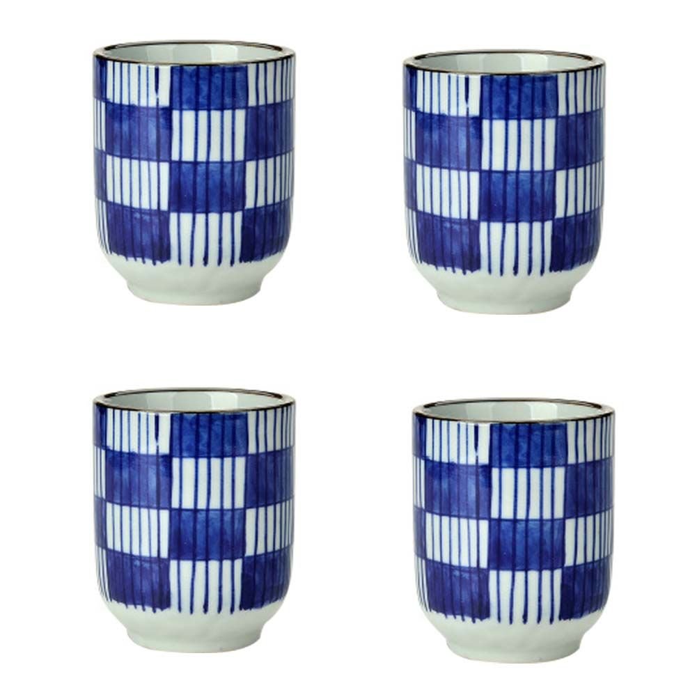 4Pcs Japanese Style Blue White Blocks Ceramic Teacups Small Straight Wine Cups 150ML 4Pcs Japanese Style Blue White Blocks Ceramic Teacups Small Straight Wine Cups 150ML