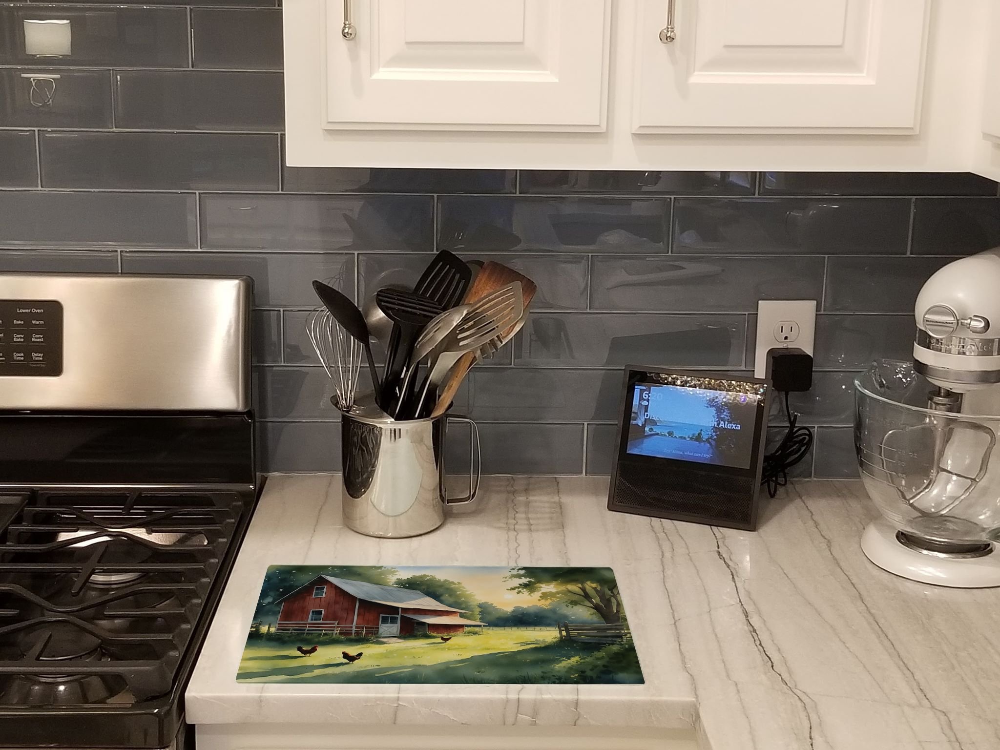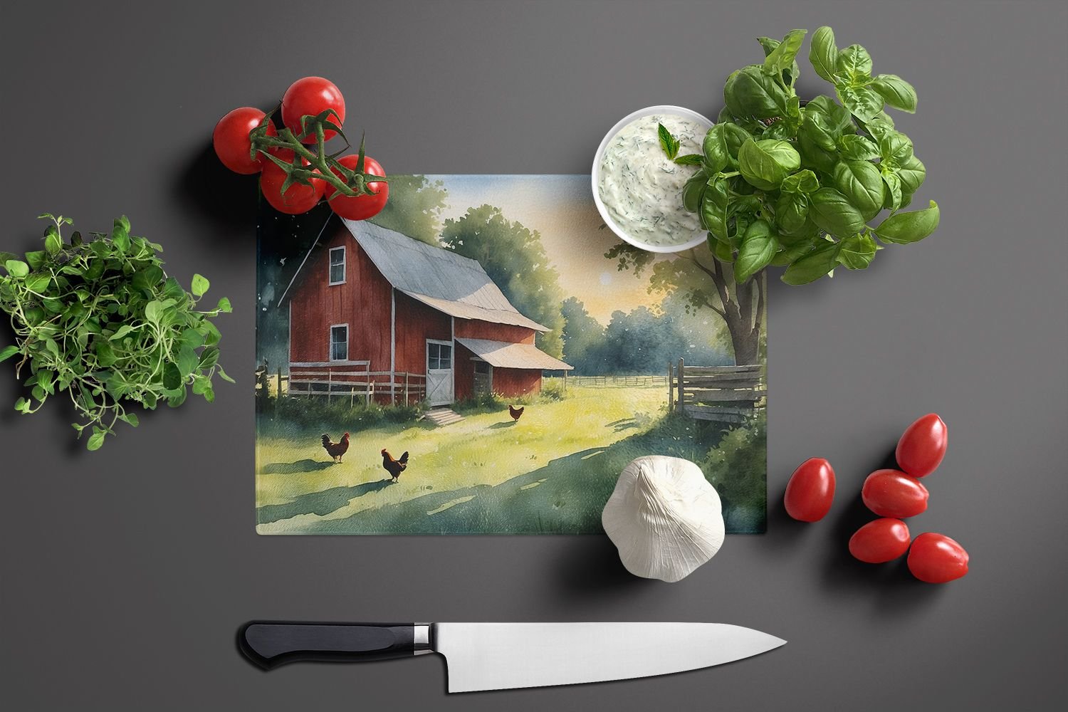 Home > Chicken Coop at Dawn Glass Cutting Board Decorative Tempered Glass Kitchen Cutting and Serving Board Large Size Chopping Board