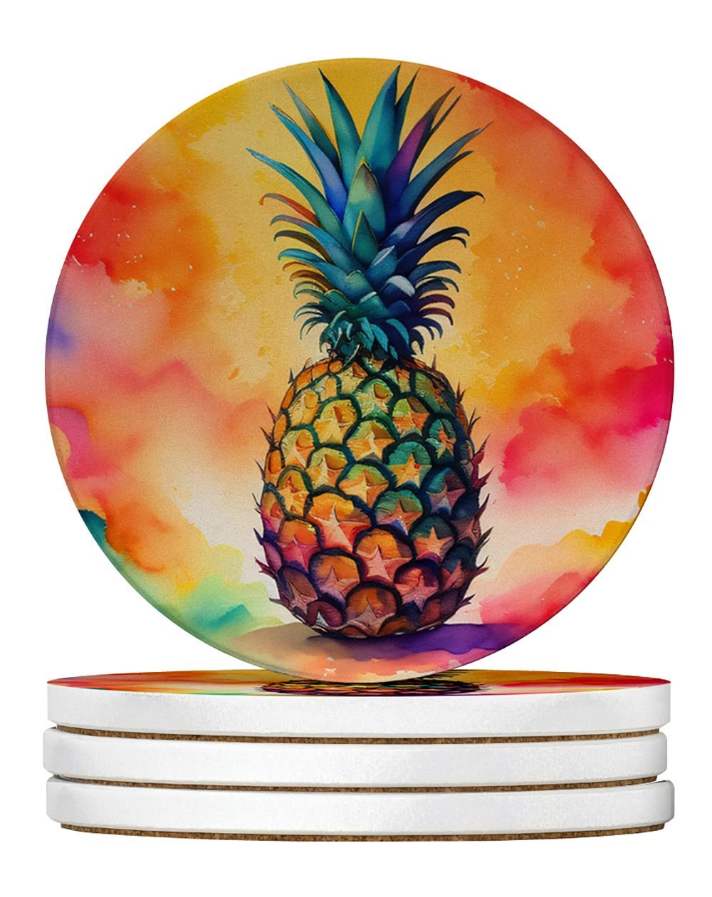 Home > Colorful Pineapple Large Sandstone Coasters Pack of 4 Absorbent Round Coasters Decor Gifts for Men or Women, 4 in, Multicolor