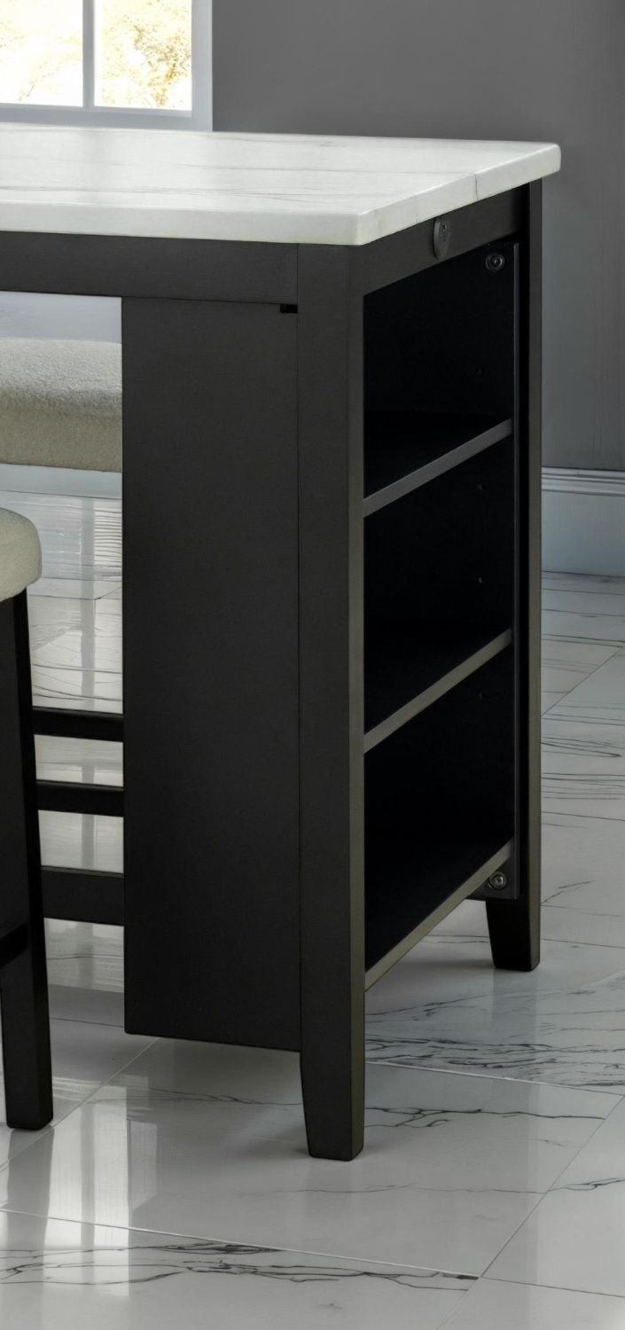 Dining Room Transitional 3pc Dining Set Gloss Table Top w Storage Shelves Side 2x Stools Black Ivory White Dining Room Transitional 3pc Dining Set Gloss Table Top w Storage Shelves Side 2x Stools Black Ivory White Dining Room Transitional 3pc Dining Set Gloss Table Top w Storage Shelves Side 2x Stools Black Ivory White