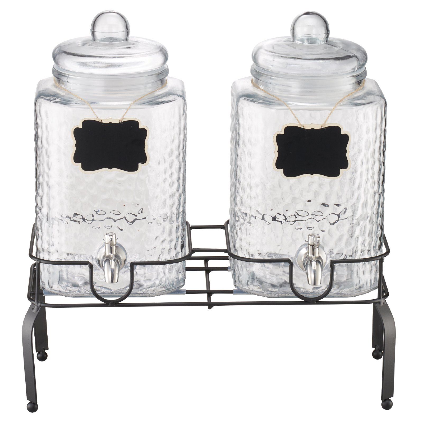 The transparent glass cylinder shows drink levels clearly, while the wide-mouth design makes refills easy. The lid prevents dust, the stand provides stable support and easy dispensing, and the small chalkboards are perfect for labeling beverage names.