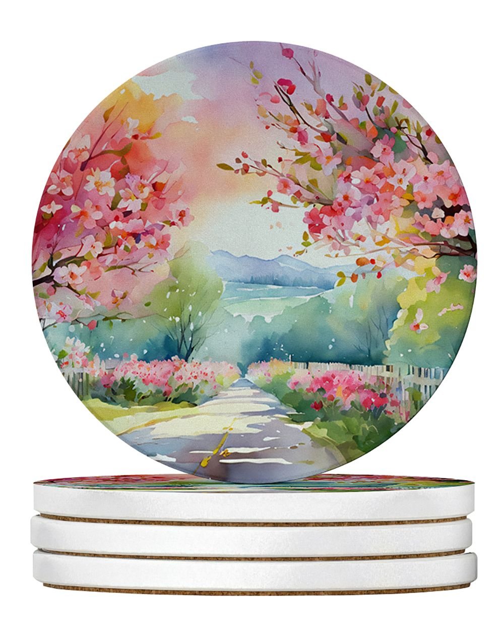 Home > Michigan Apple Blossoms in Watercolor Large Sandstone Coasters Pack of 4 Absorbent Round Coasters Decor Gifts for Men or Women, 4 in, Multicolor