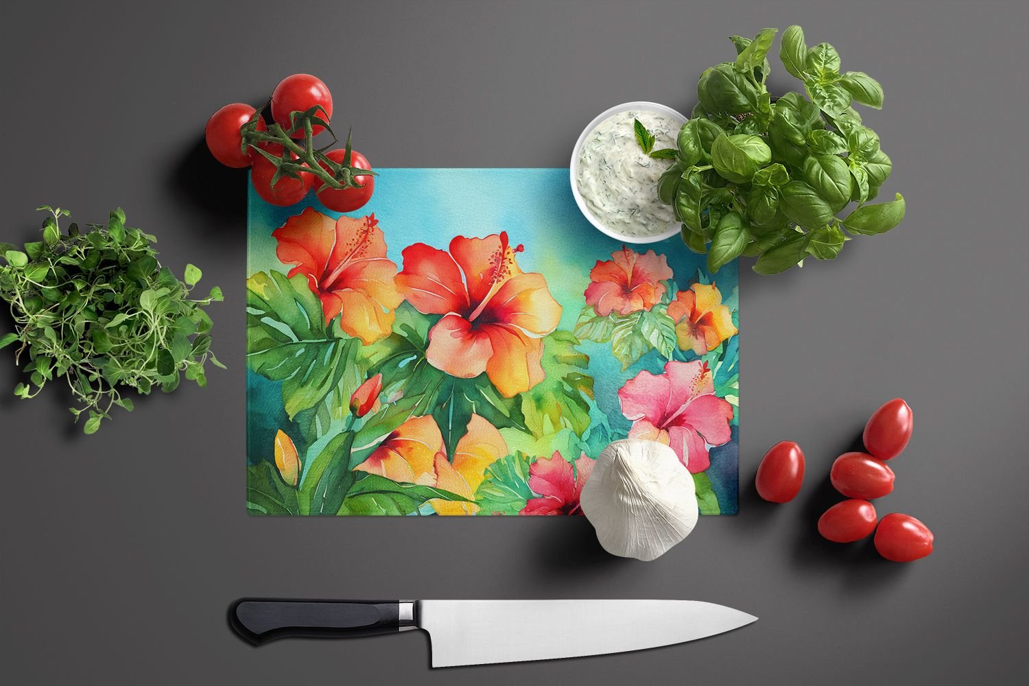 Home > NEW Hawaii Hawaiian Hibiscus in Watercolor Glass Cutting Board Decorative Tempered Glass Kitchen Cutting and Serving Board Large Size Chopping Board
