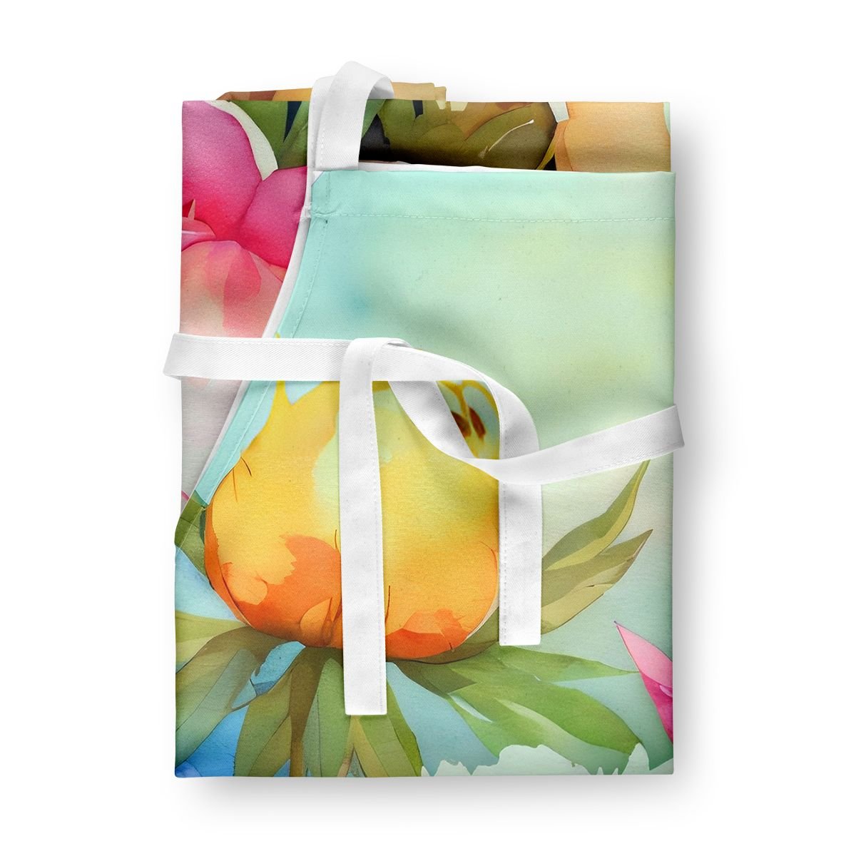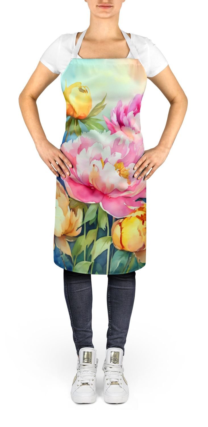 Peonies in Watercolor Apron Cooking Kitchen Server Baking Crafts Gardening for Adult Women Men, Unisex, Large, Multicolor