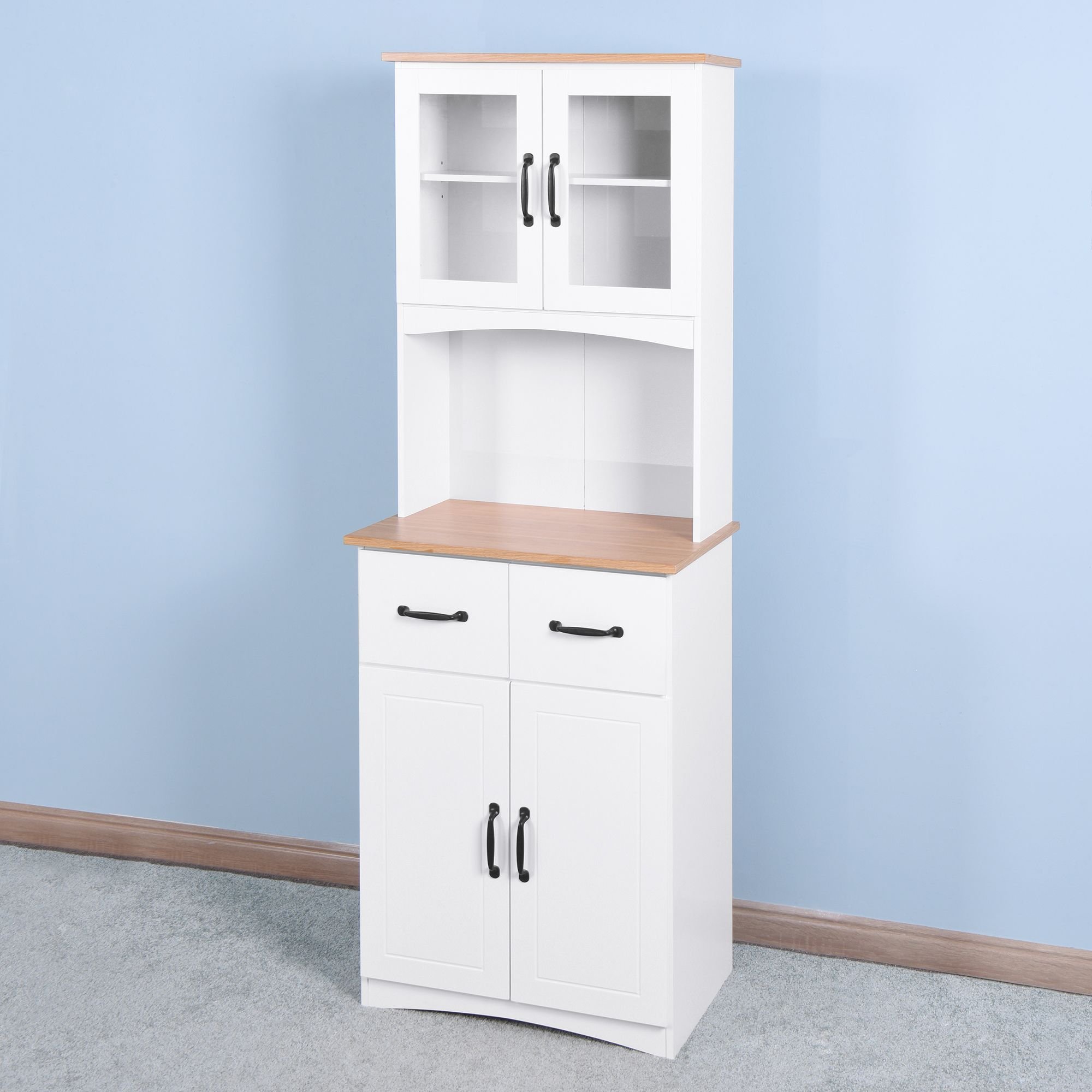 Wooden Kitchen Cabinet White Pantry Room Storage Microwave Cabinet with Framed Glass Doors and Drawer Wooden Kitchen Cabinet White Pantry Room Storage Microwave Cabinet with Framed Glass Doors and Drawer Wooden Kitchen Cabinet White Pantry Room Storage Microwave Cabinet with Framed Glass Doors and Drawer